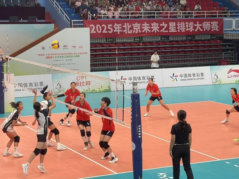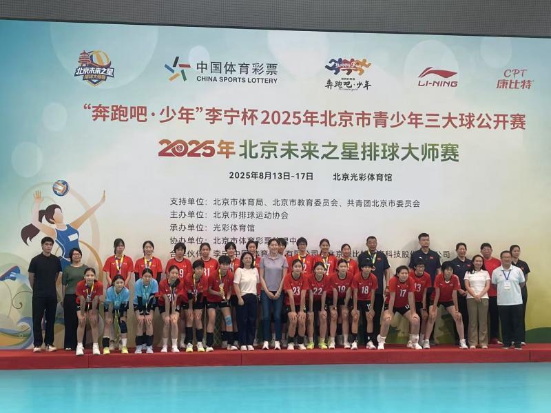 8月17日,2025北京未来之星排球大师赛在光彩体育馆进行决赛。北京木樨园体校女排从来自全国16支U16队伍中脱颖而出,在决赛中3比0击败徐州棠张中学女排,捧起冠军奖牌。几个月前的全国女排超级联赛,这些北京排球少年曾为联赛服务,在光彩体育馆做球童。如今她们怀揣着对排球的热爱,登上了排球大师赛的最高领奖台。